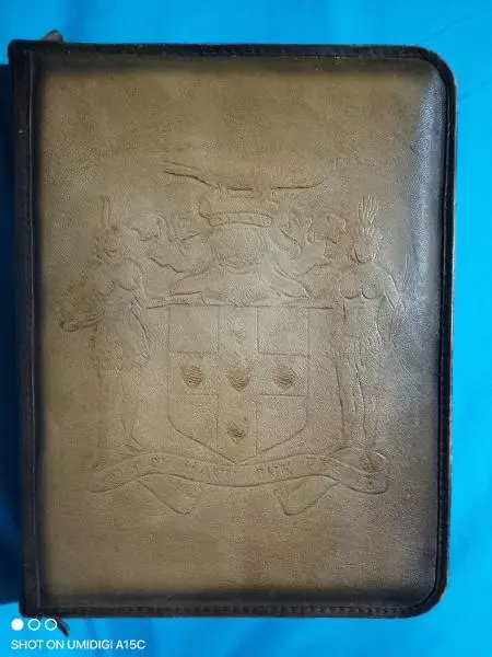 The Jamaican Coat of Arms is exquisitely engraved on the front making it a show of pride and a great conversation piece at any meeting.