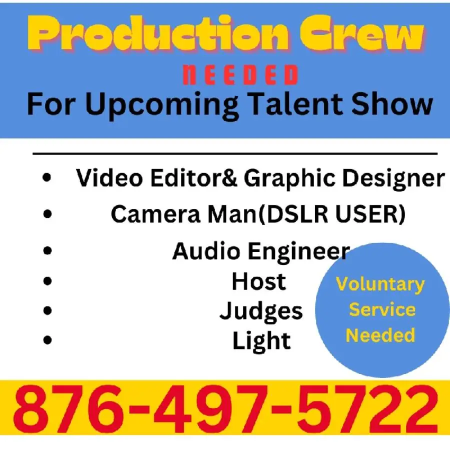 CALLING ALL VOLUNTEERS! COME TO THE FRONT OF THE CLASS! Are you interested in editing, graphic design, photography, audio engineering, being a TV personality, or being part of a production? Do you have skills in any of the following? Well, this is a call to volunteer your services with us! Please call us at 1-876-497-5722