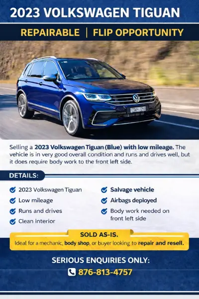 Vehicle is sold as-is and priced accordingly. Ideal for a mechanic, body shop, or buyer looking to repair and resell.